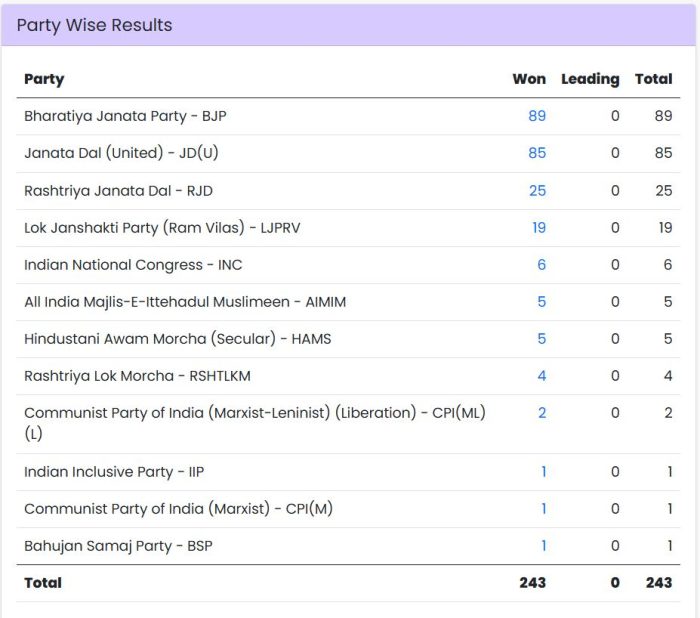 Bihar Election Final Results 2025