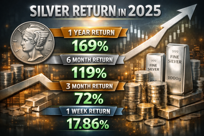 સિલ્વરમાં અધધધ… તેજી થતાં દુનિયાના ટ્રેડરો અને રોકાણકારોનું ધ્યાન ખેંચ્યું છે. ગોલ્ડ કરતાં સિલ્વરએ સૌથી વધુ 169 ટકા કરતાં વધુ વળતર આપ્યું છે. તેની સાથે સિલ્વરનો ભાવ 79 ડૉલર ઐતિહાસિક નવી ઊંચાઈ દર્શાવી હતી. જેથી સિલ્વરની માર્કેટ કેપ 4.04 ટ્રિલિયન ડૉલર પર પહોંચી હતી. અને તે સાથે સિલ્વર વિશ્વની ત્રીજા નંબરની સંપત્તિ બની હતી.