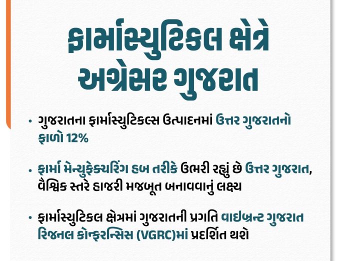 મજબૂત ઇકોસિસ્ટમ અને વ્યૂહાત્મક સ્થાન સાથે, આગામી વાઇબ્રન્ટ ગુજરાત પ્રાદેશિક પરિષદ (VGRC) ફાર્માસ્યુટિકલ ક્ષેત્ર માટે મહત્વપૂર્ણ રહેશે. આ કાર્યક્રમને સરકાર, ઉદ્યોગ અને યુનિવર્સિટીઓ વચ્ચેના મજબૂત સહયોગનો પણ લાભ મળશે. તેઓ દેશના ફાર્માસ્યુટિકલ ઉદ્યોગના ભાવિને આકાર આપવા માટે તૈયાર છે.